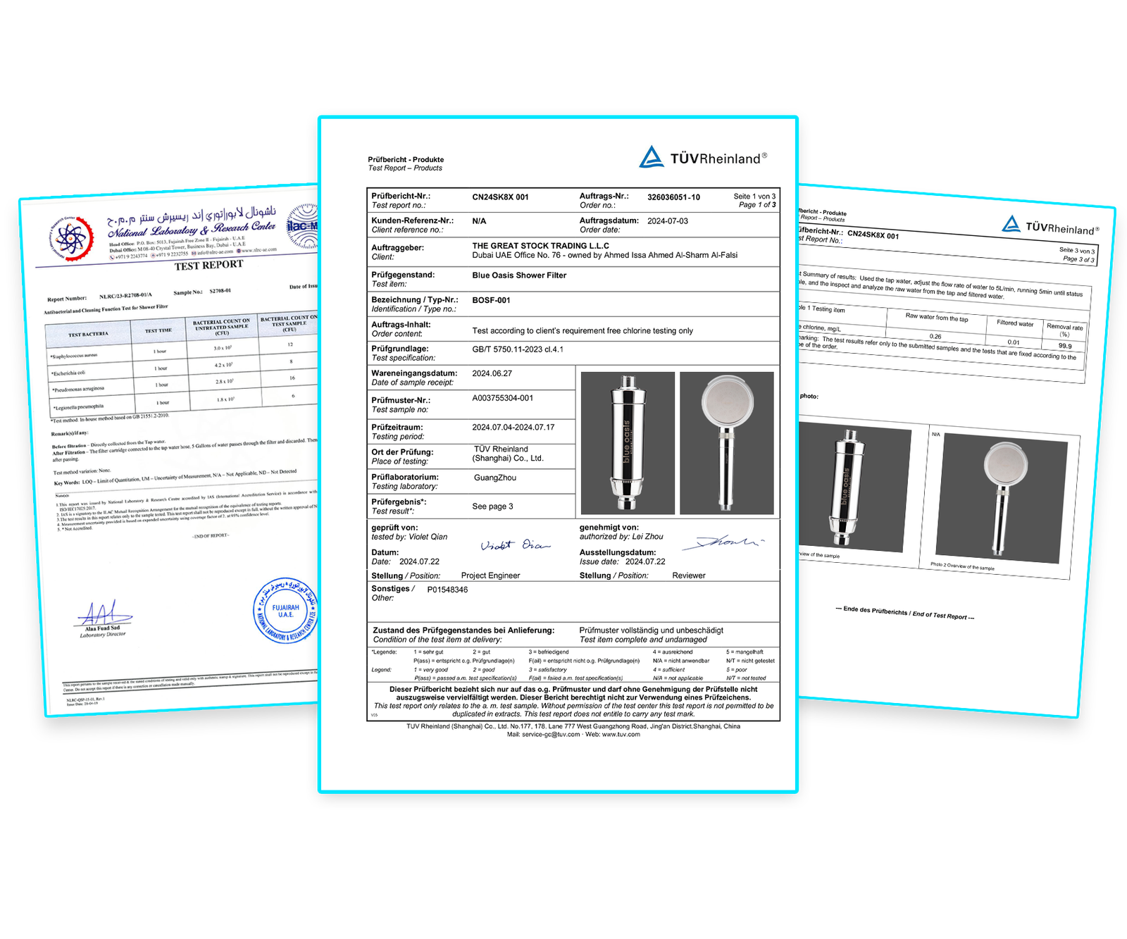 The Blue Oasis Shower Filter is designed to provide an optimal balance between water pressure and filtration performance. Its typical flow rate ranges from 6 to 8 liters per minute (approximately 360 to 480 liters per hour), ensuring a refreshing and efficient shower experience while maintaining effective water filtration.