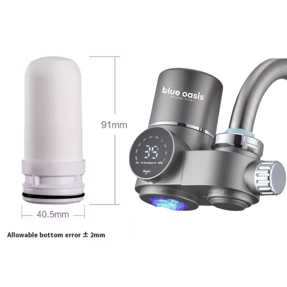 The Blue Oasis Rain Shower Filter is designed to provide an optimal balance between water pressure and filtration performance. Its typical flow rate ranges from 6 to 8 liters per minute (approximately 360 to 480 liters per hour), ensuring a refreshing and efficient shower experience while maintaining effective water filtration.